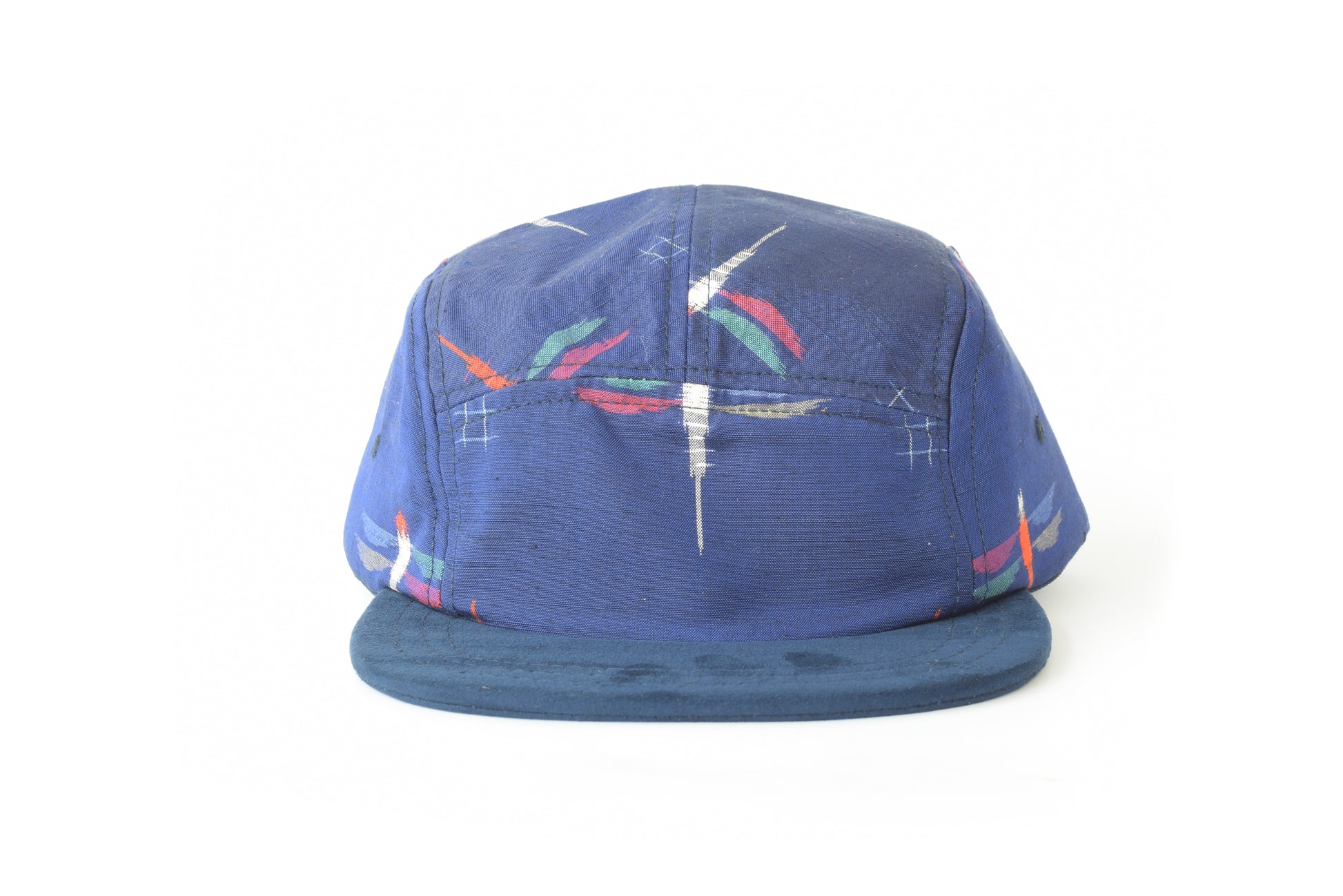 The Dragonfly five panel short brim hat is handmade with silk kimono from the 1960s. Upcycled Japanese kimono to hat in 2024, handsourced in Tokyo.