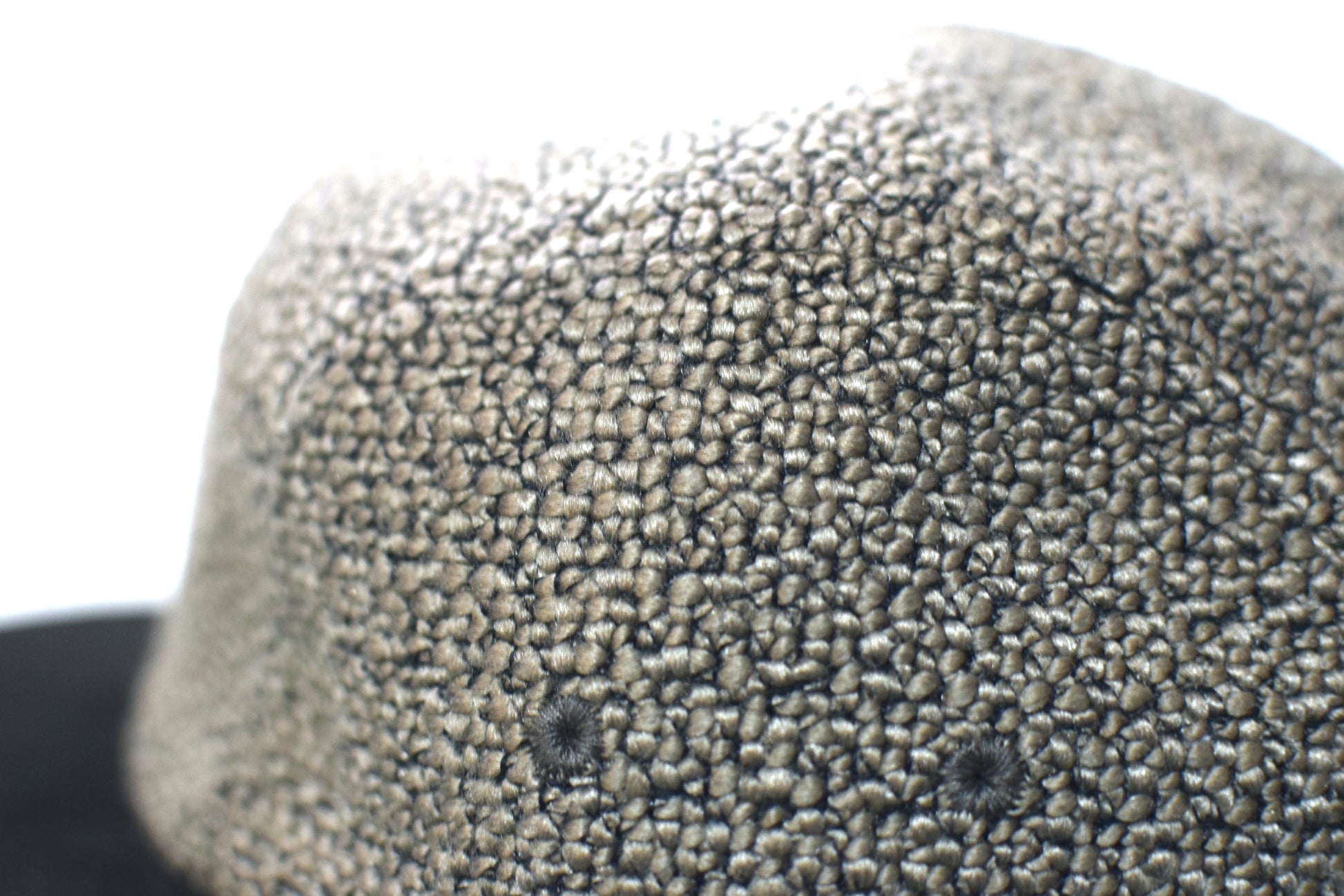 The Gris gruesa five-panel hat is handmade with fabric from the US. It's a high quality deadstock, cotton / polyester textile we found while sourcing materials in NYC.