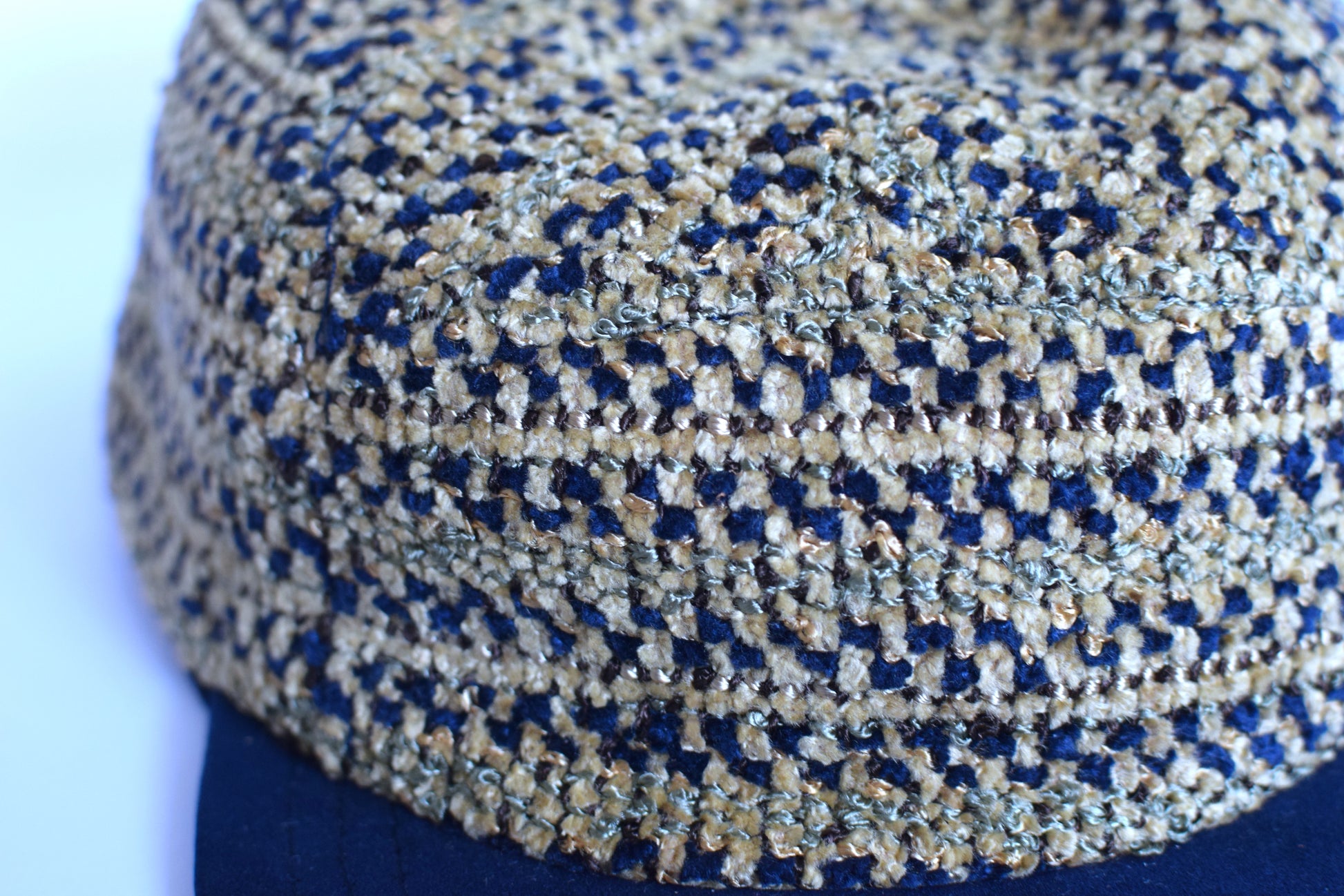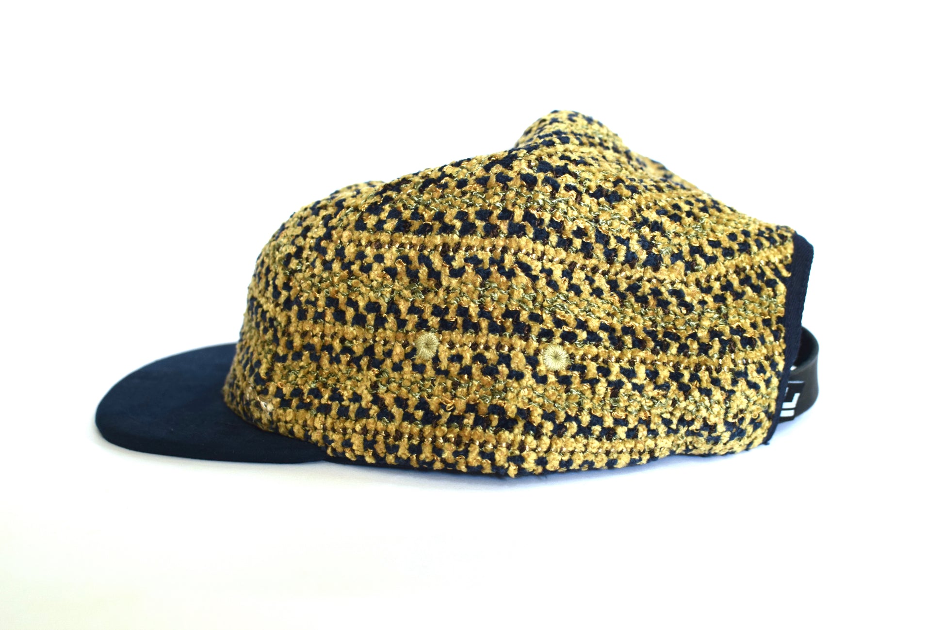 The Wide Stitch five-panel hat is handmade with fabric from the US. It's a high quality deadstock, cotton / polyester textile we found while sourcing materials in NYC.