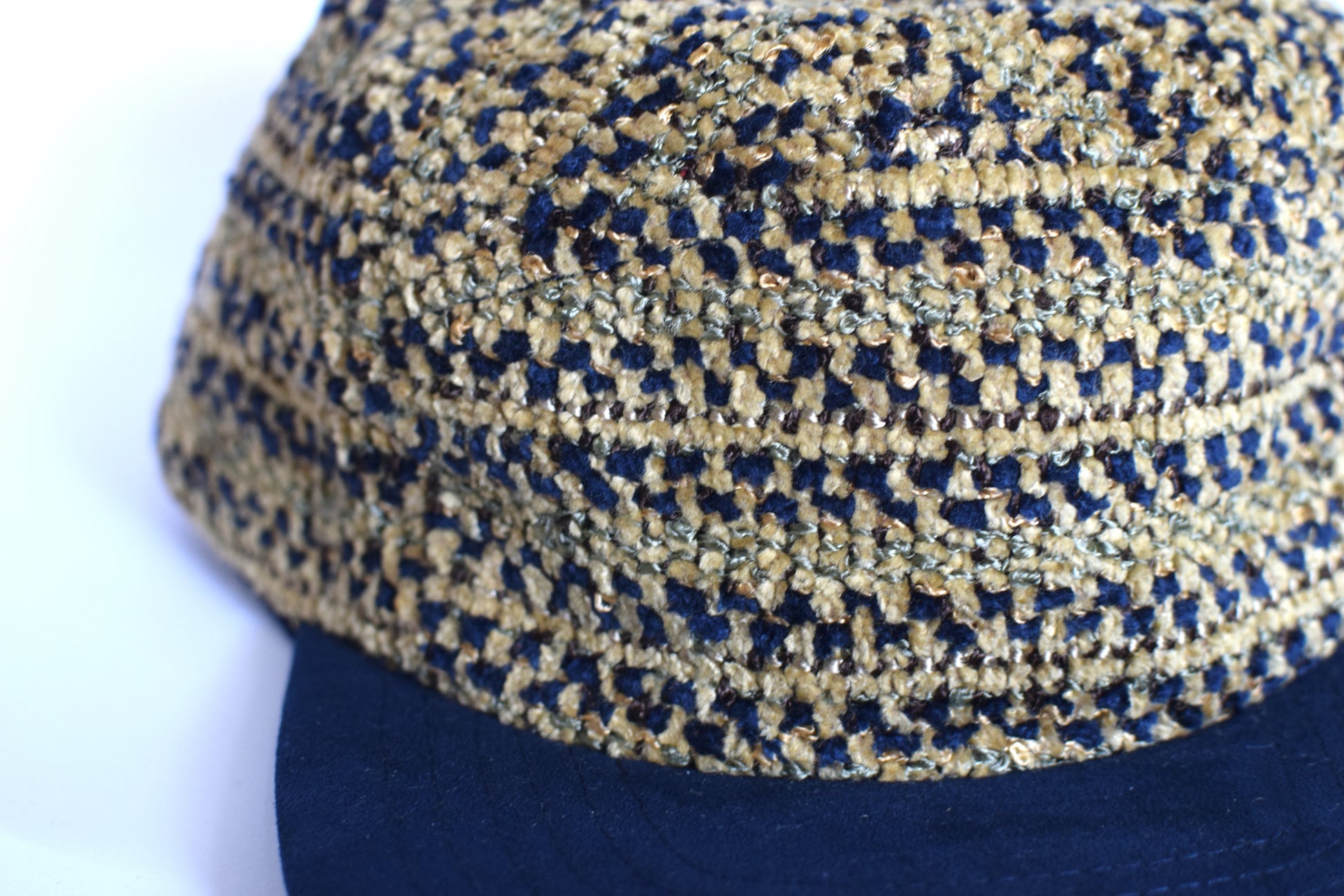 The Triangurosa five-panel hat (short brim) is handmade with fabric from Portugal.