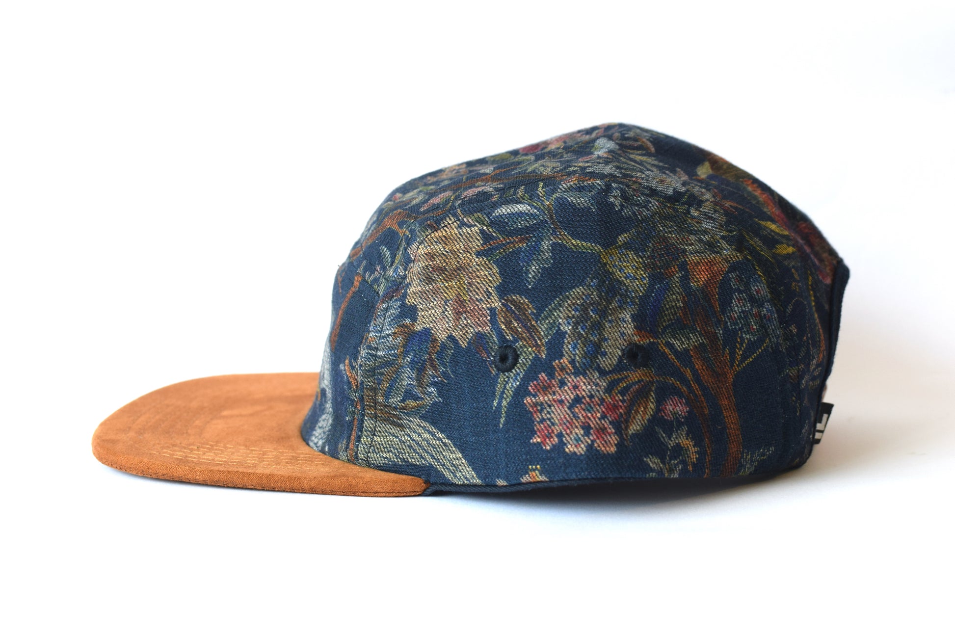 The Giunco five panel hat is handmade with fabric we bought in NY, but they told us it was made in Italy so we gave it an Italian tag.