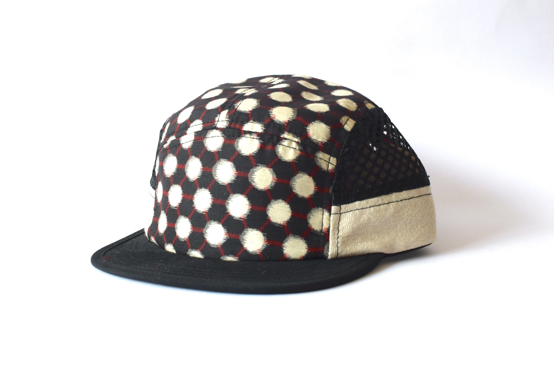The Matsudo five-panel (sb) hat  is handmade with a thin, silk, kimono textile from Japan. Soft curve brim, lightweight construction makes this hat perfect for running. Quick dry fabrics for exercising, machine washable for cleaning.