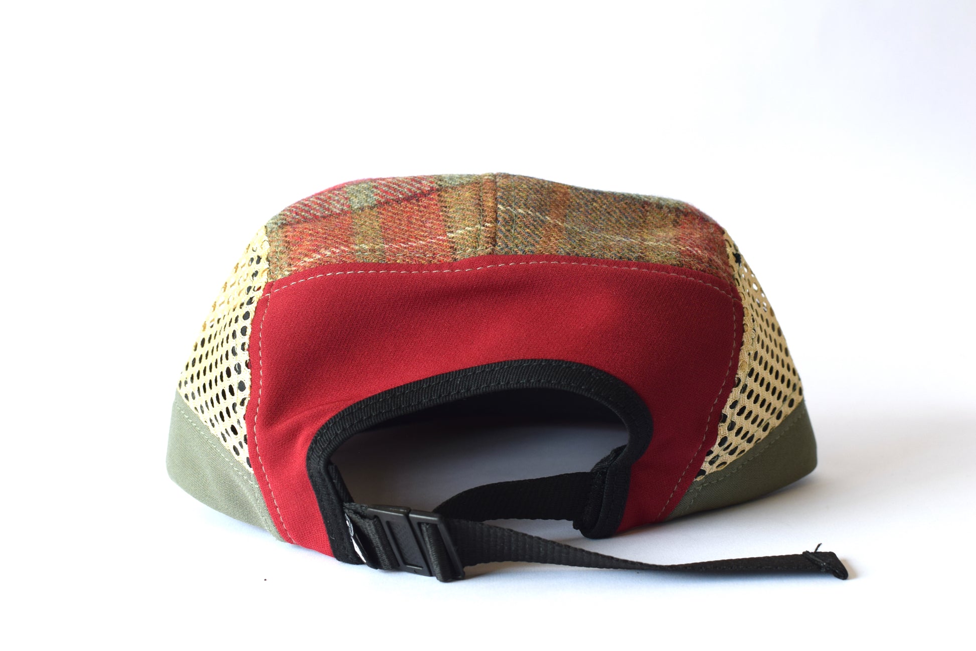 The Scosia Plaid Eight  Rojo panel sport short brim hat is handmade with thin, wool textile from Mexico. Soft curve brim, lightweight construction makes this hat perfect for running. Quick dry fabrics for exercising, machine washable for cleaning.