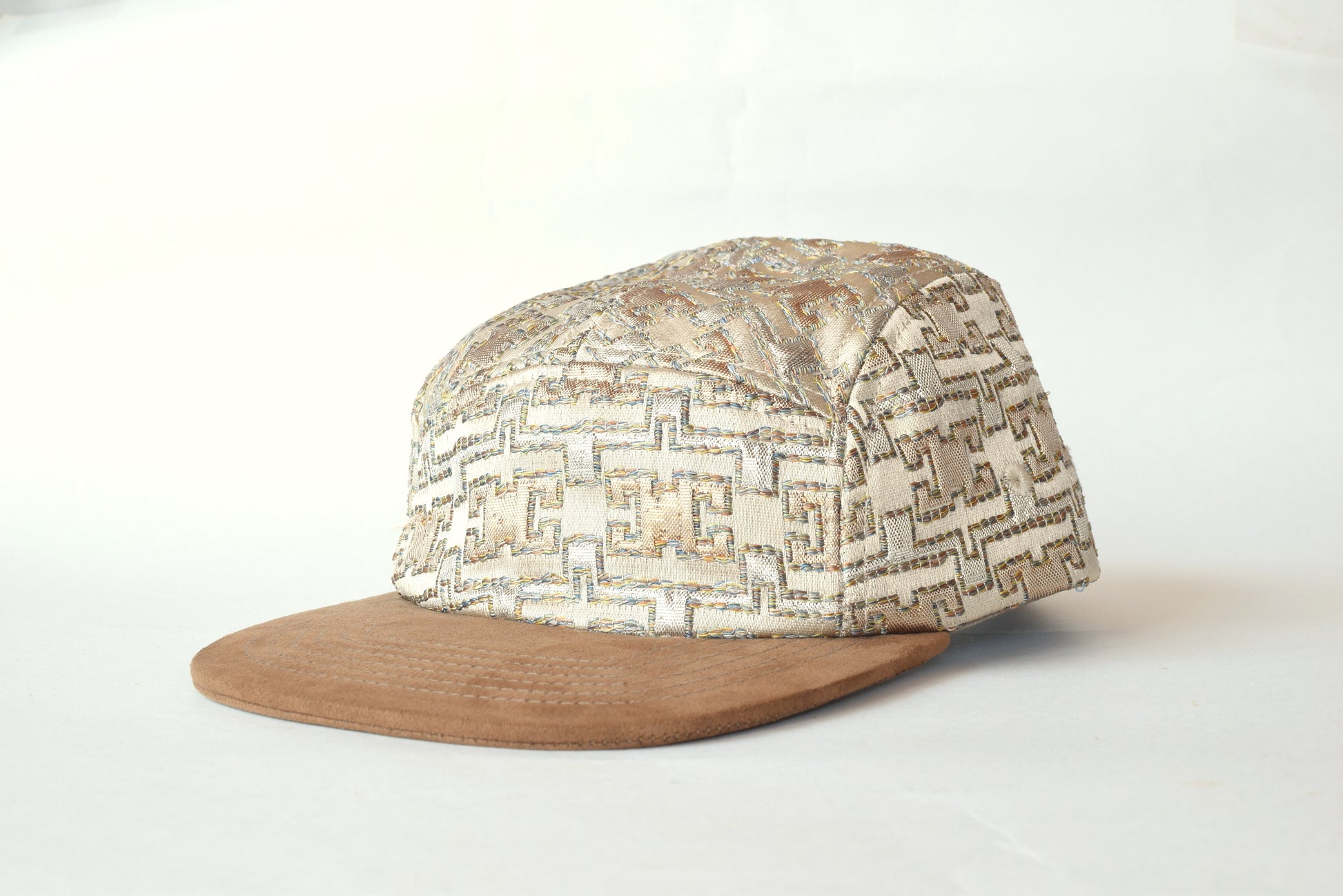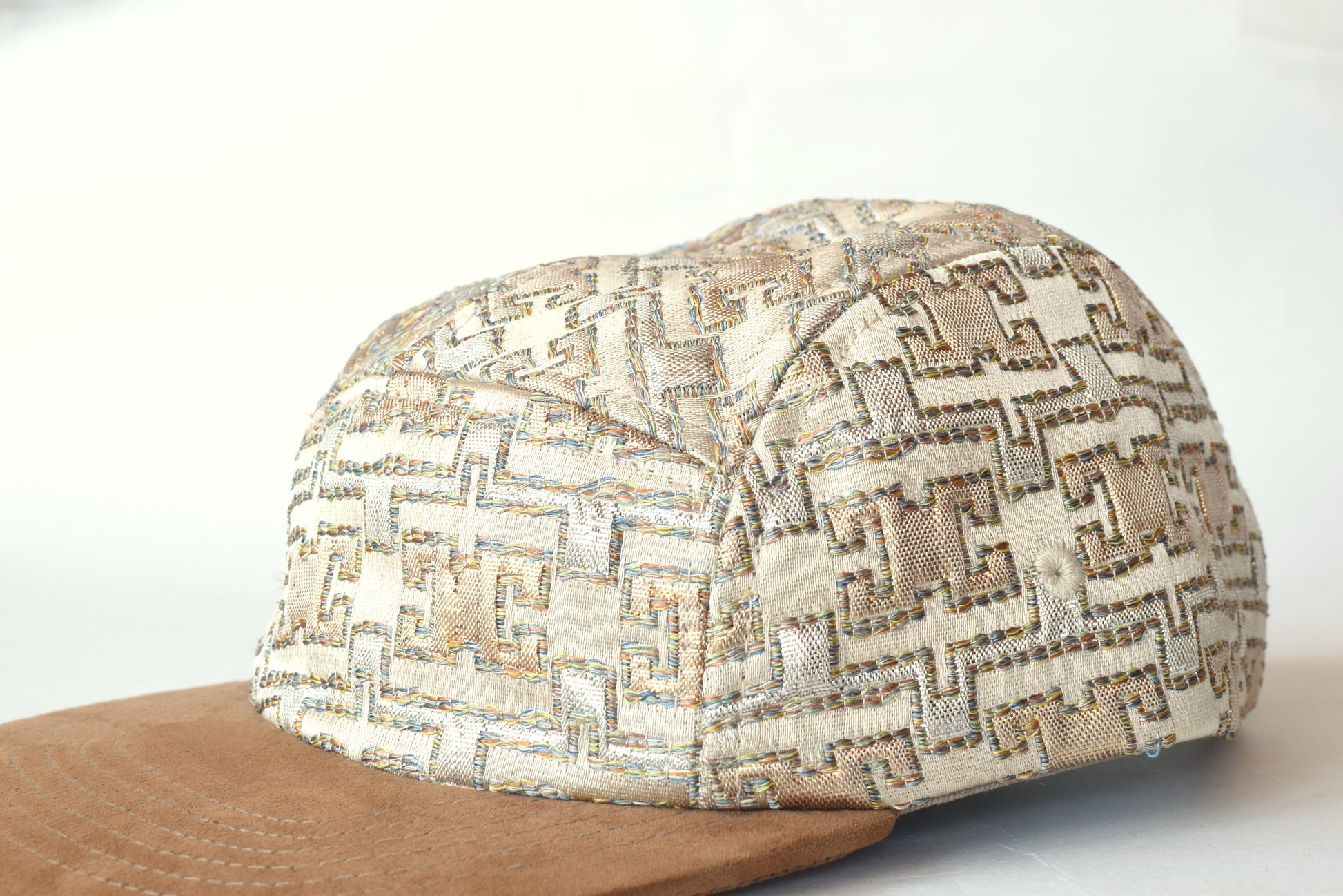 The Almataha five-panel hat is handmade with fabric from Morocco.