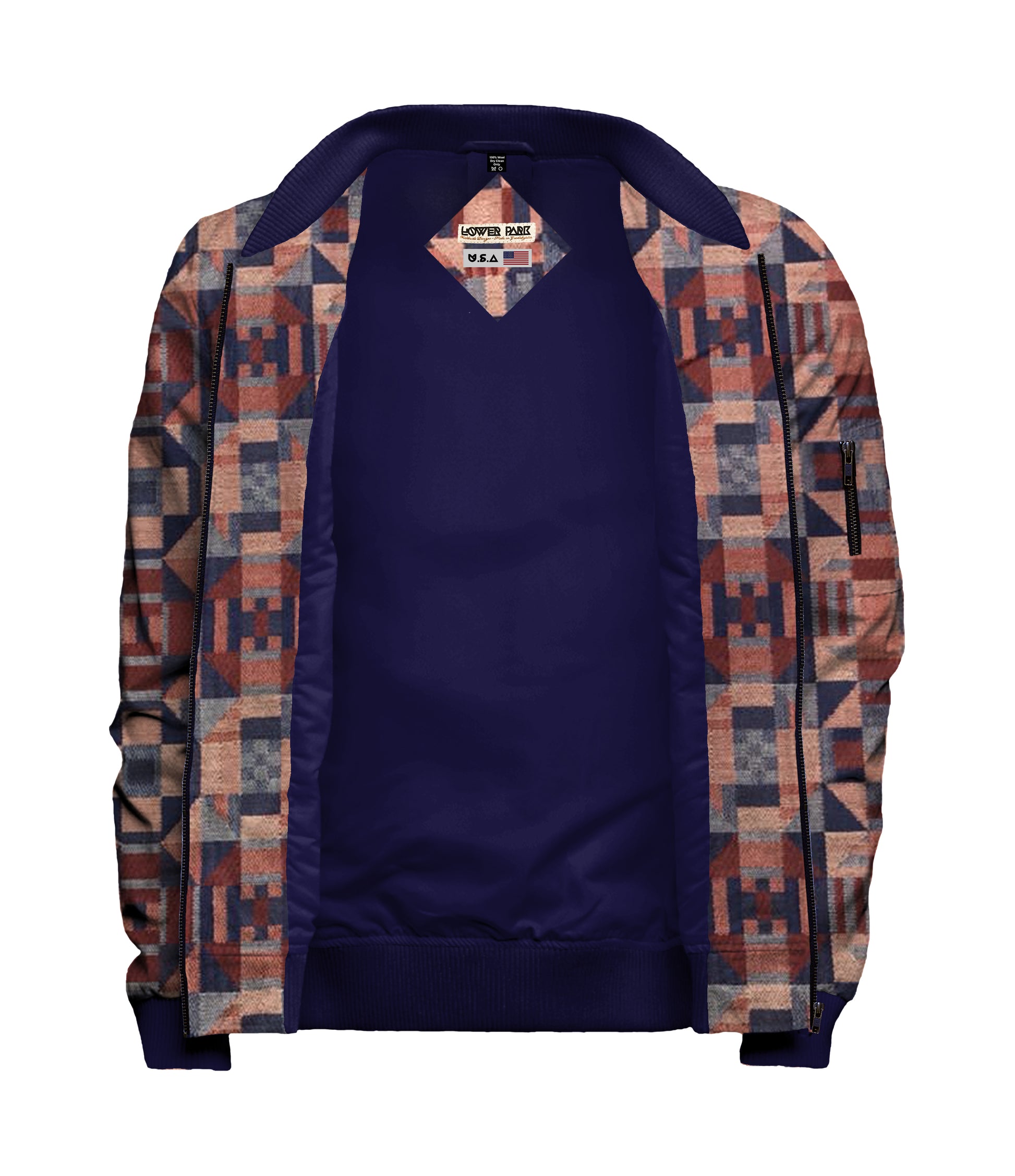 Karlo Bomber Jacket - $160. Custom made to order. This textile is made in the United States and is a 60/40 Polyester/Cotton. A large size jacket weights 1.5lbs / 24oz.