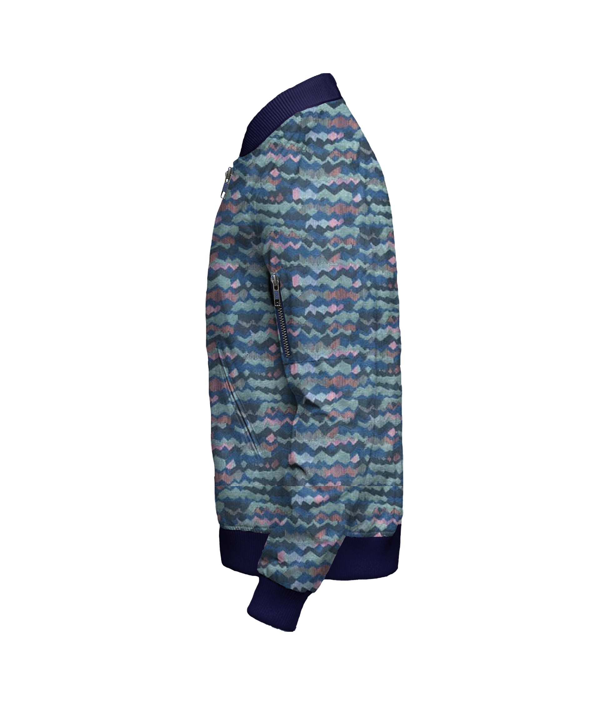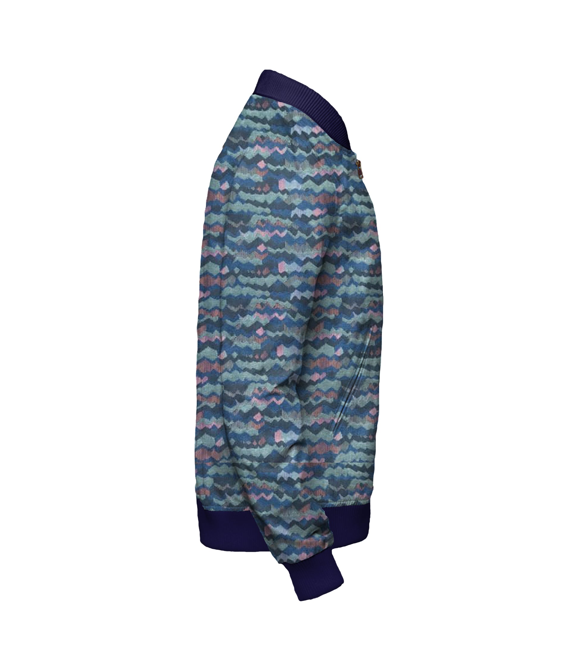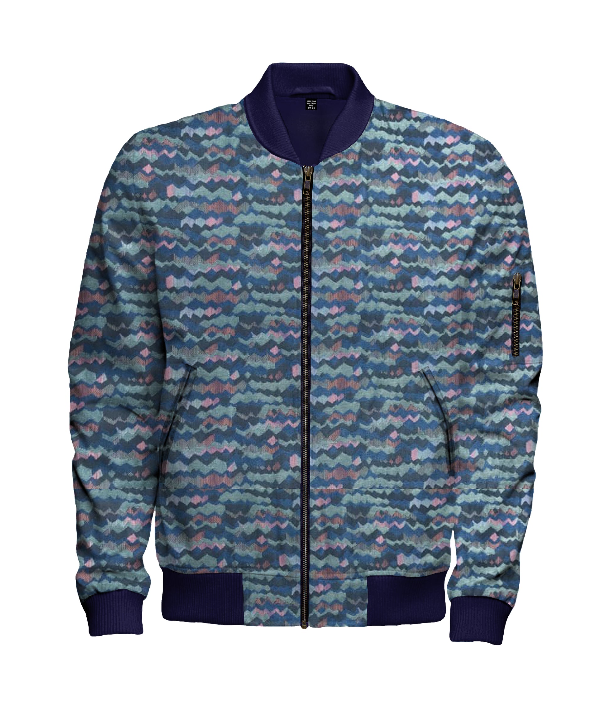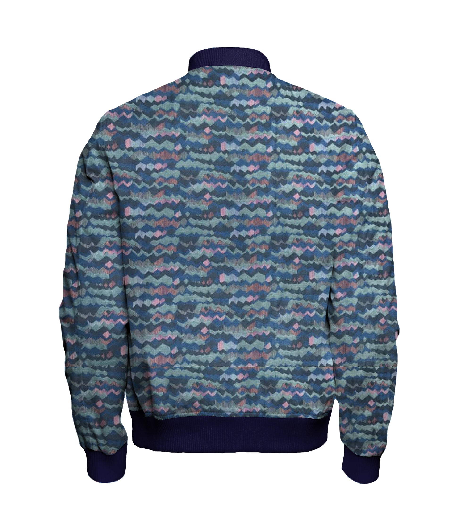 Bocana Bomber Jacket. Custom made to order. This textile is made in the United States and is a 60/40 Polyester/Cotton. A large size jacket weights 1.5lbs / 24oz.
