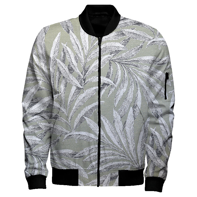 Hojas Flacas Bomber Jacket - $160. Custom made to order. This textile is 50/50 blend of cotton/polyester and is made in the US. A large size jacket weights 1.5lbs / 24oz.