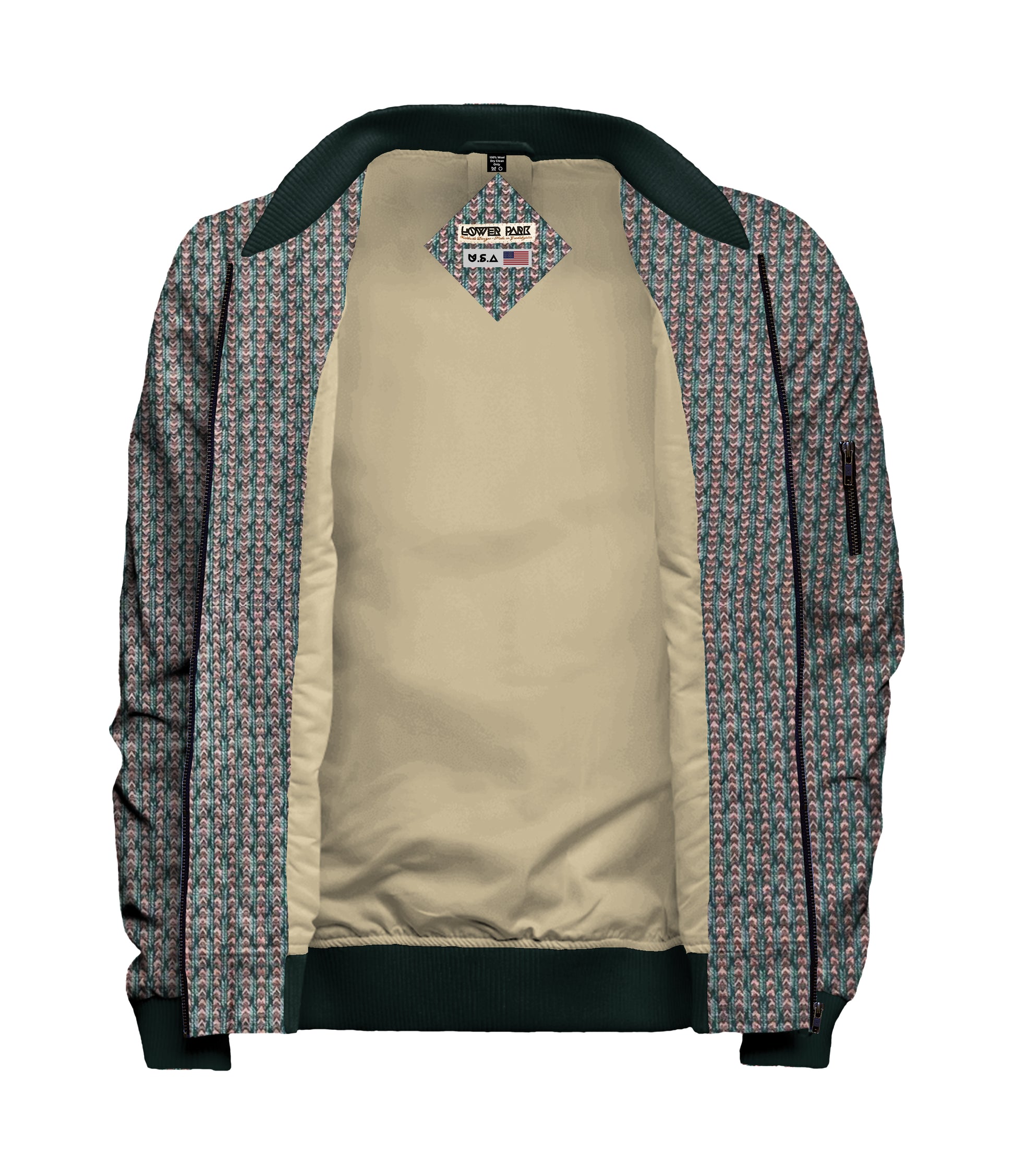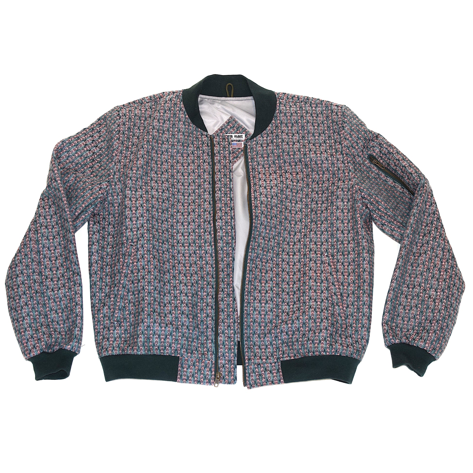 Jae Llade Bomber Jacket - $200. Custom made to order. This textile was hand sourced in the US and is 50% cotton 50% recycled polyester. A large size jacket weights 1.5lbs / 24oz.