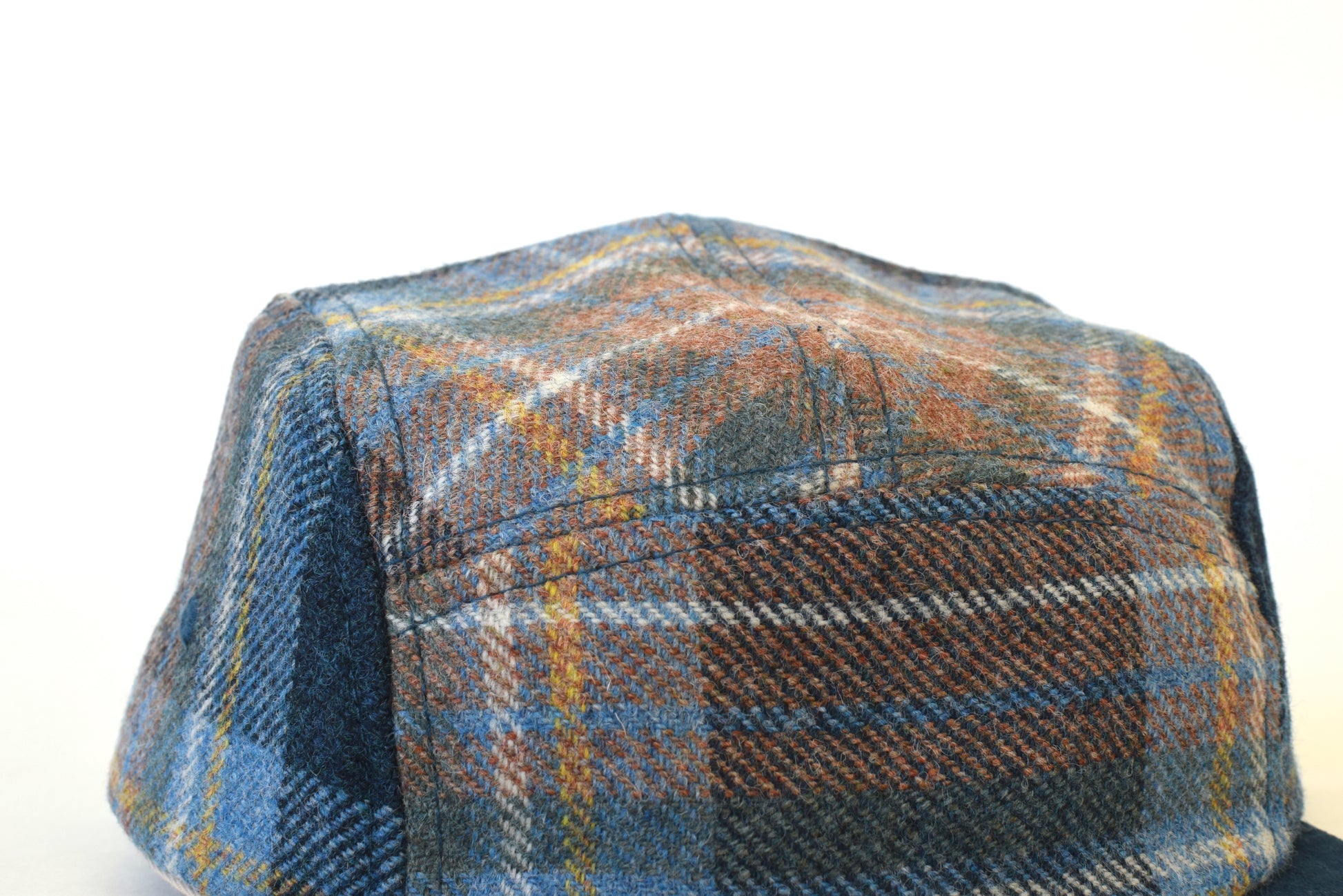 The Scosia Plaid Rojo five-panel hat (sb) is handmade with thin organic wool from Scotland.