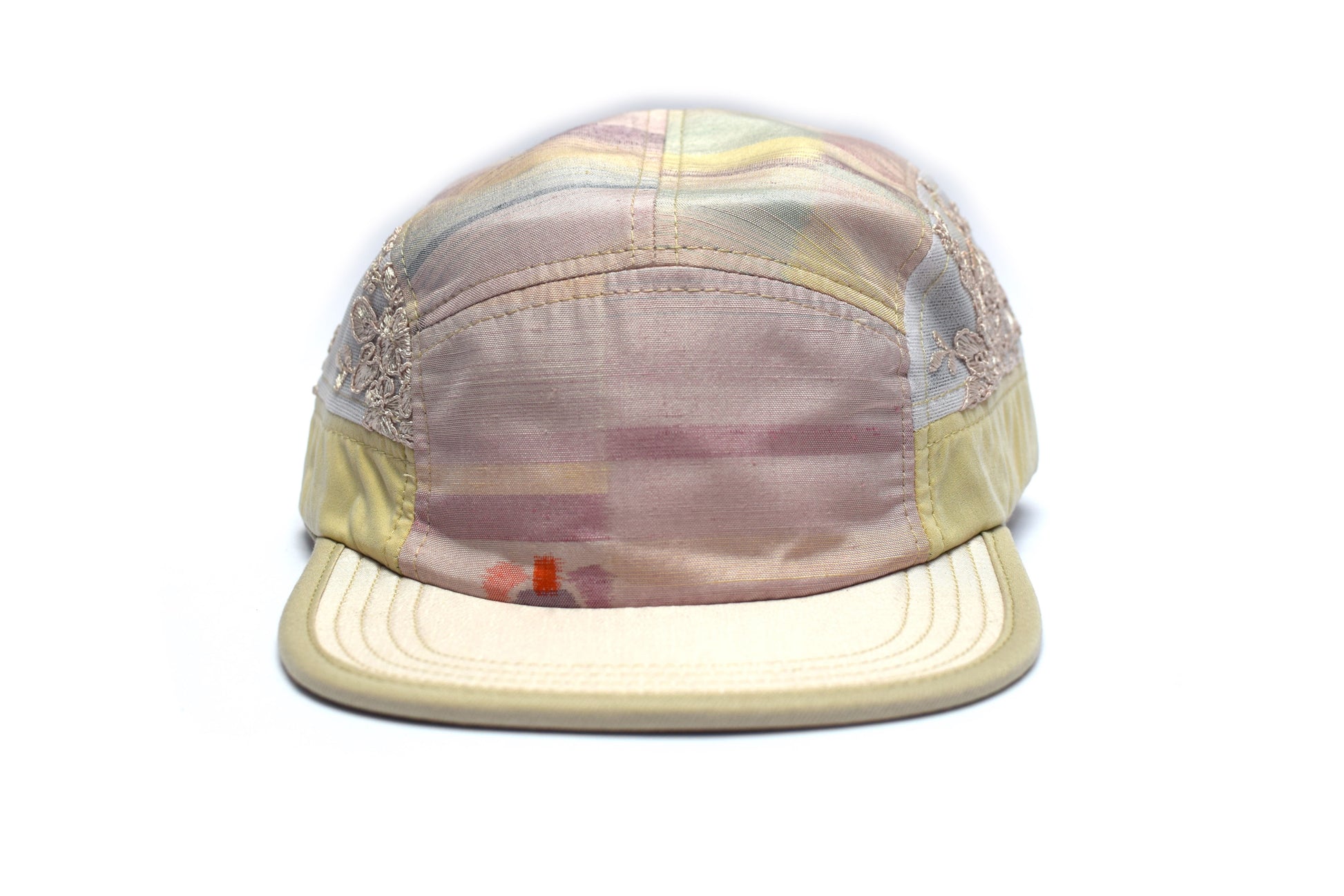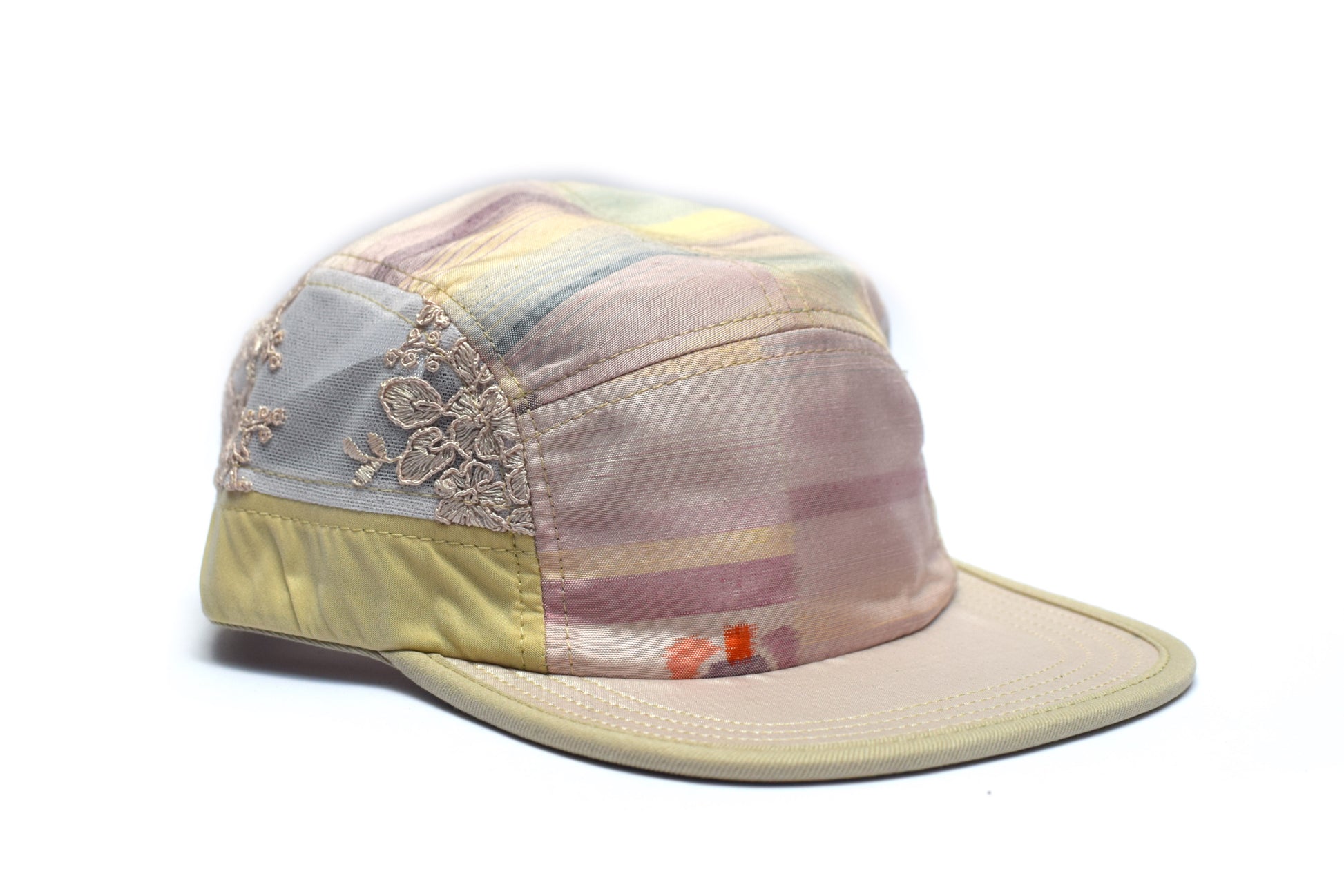 The Tokorazawa five-panel hat  is handmade with a thin, silk, kimono textile from Japan. Soft curve brim, lightweight construction makes this hat perfect for running. Quick dry fabrics for exercising, machine washable for cleaning.