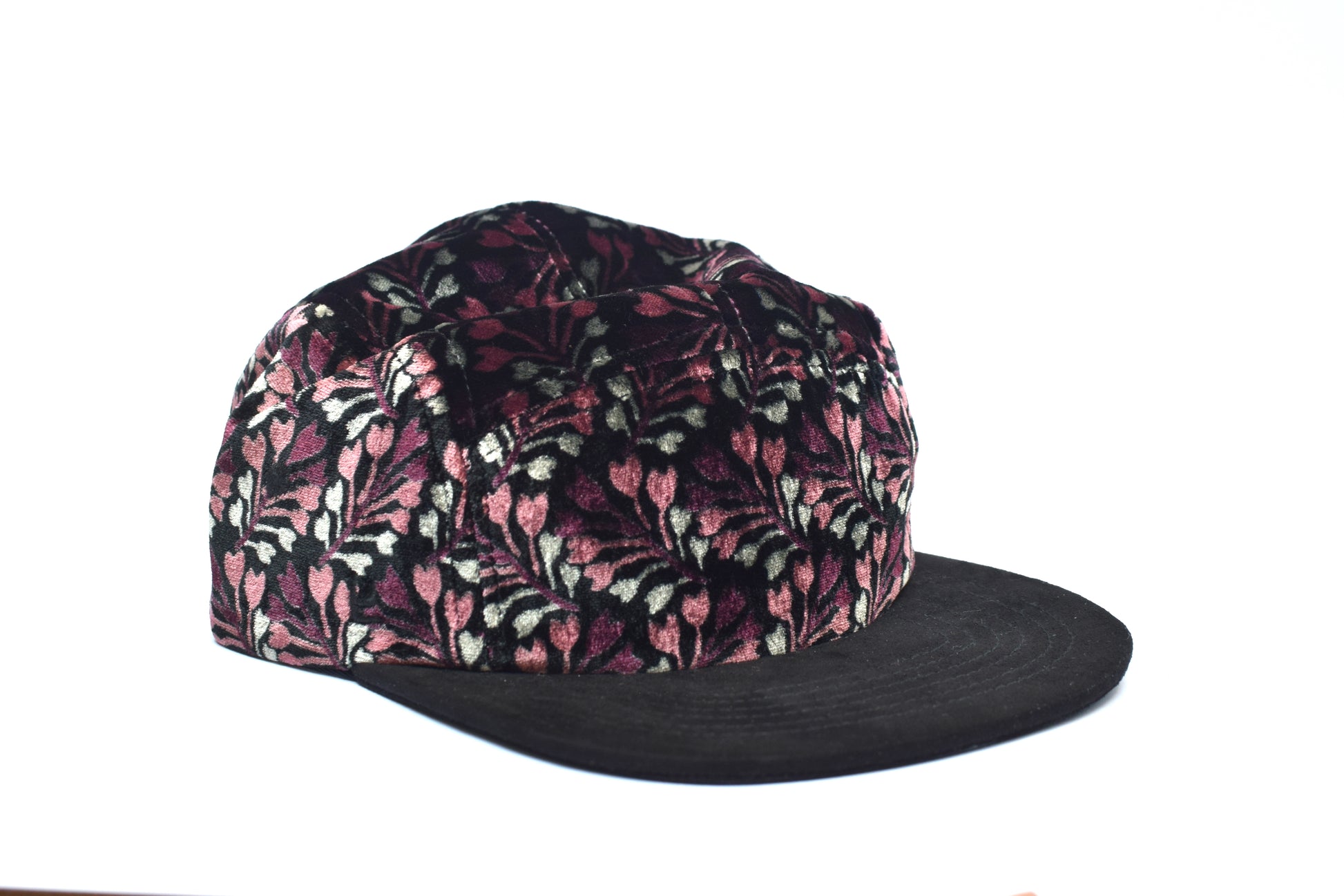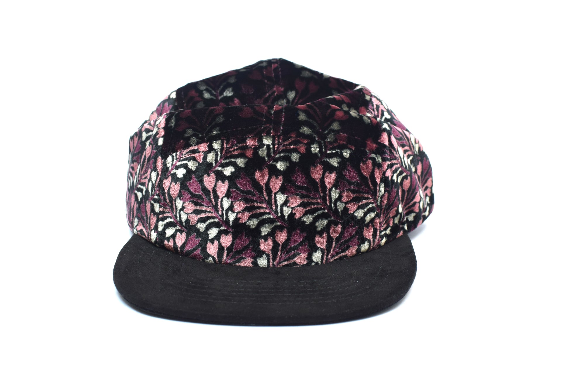 The Cerveteri five-panel hat is handmade with a velvet fabric from Italy.