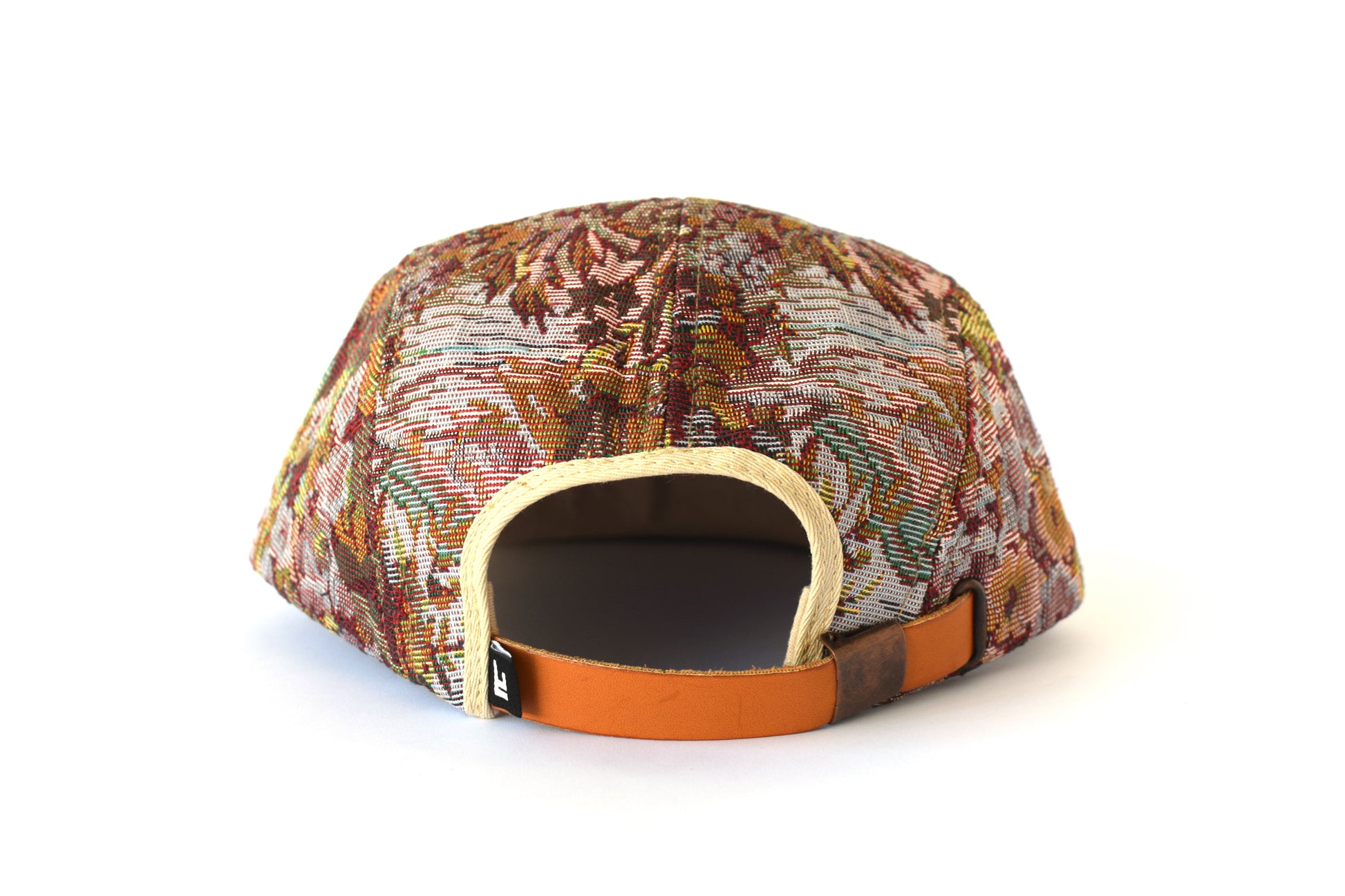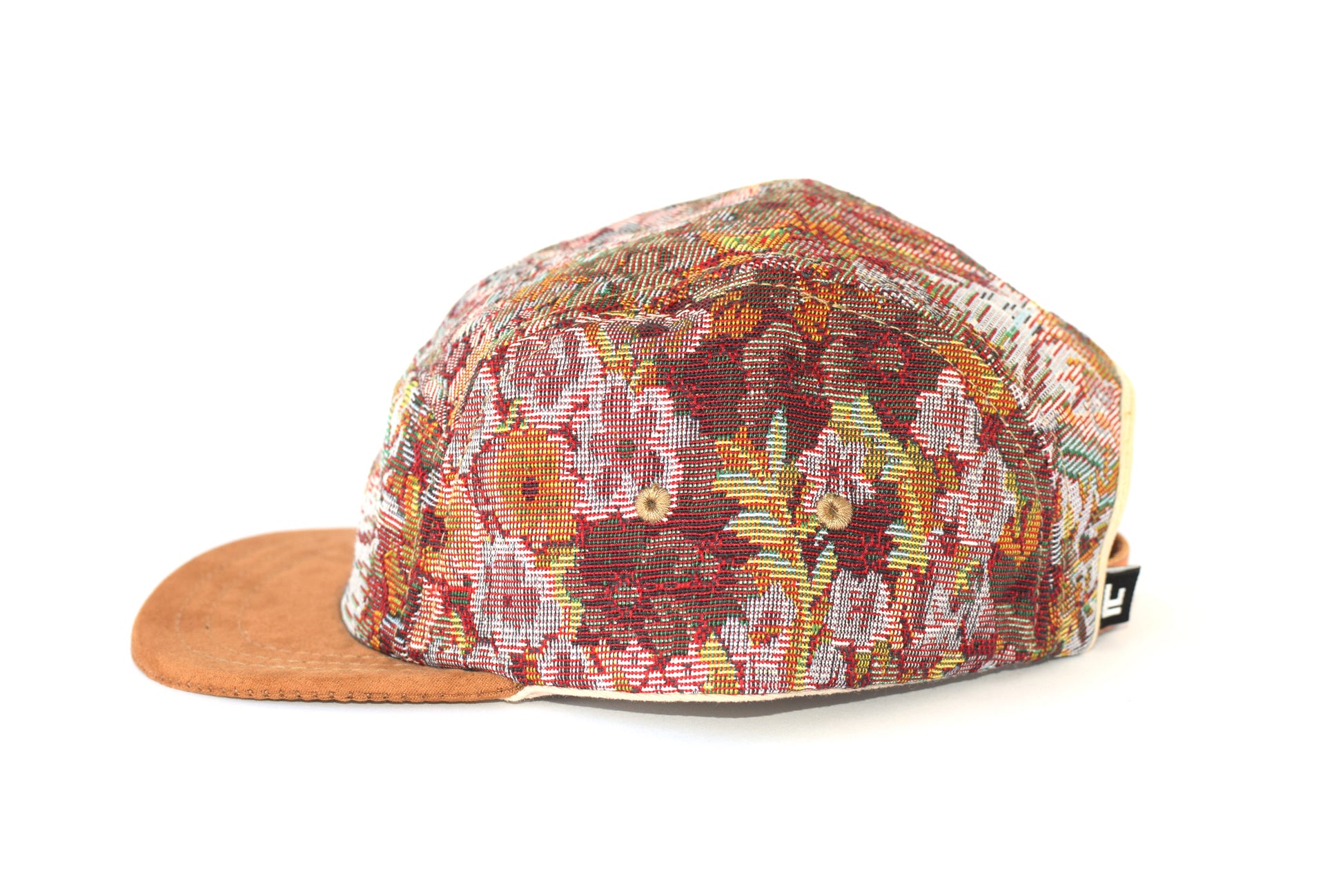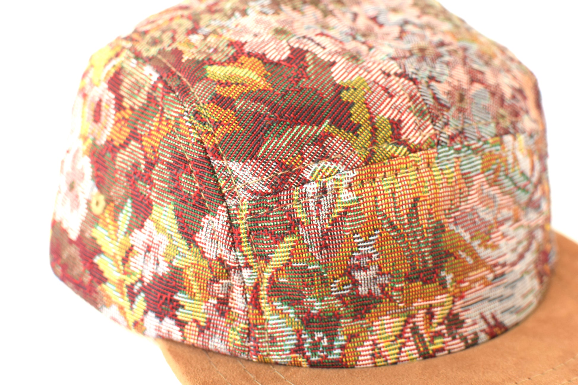 The Xinyi five-panel hat (sb) is handmade with a jacquard textile from Taiwan